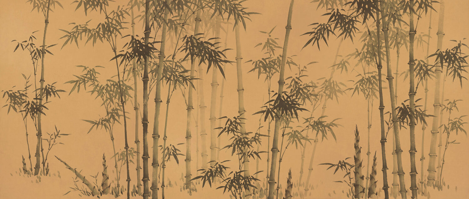 Musee custom wall mural featuring a traditional ink wash painting of a bamboo forest with detailed leaves and stalks in a serene Chinoiserie style.